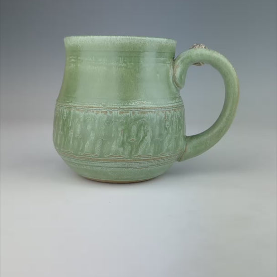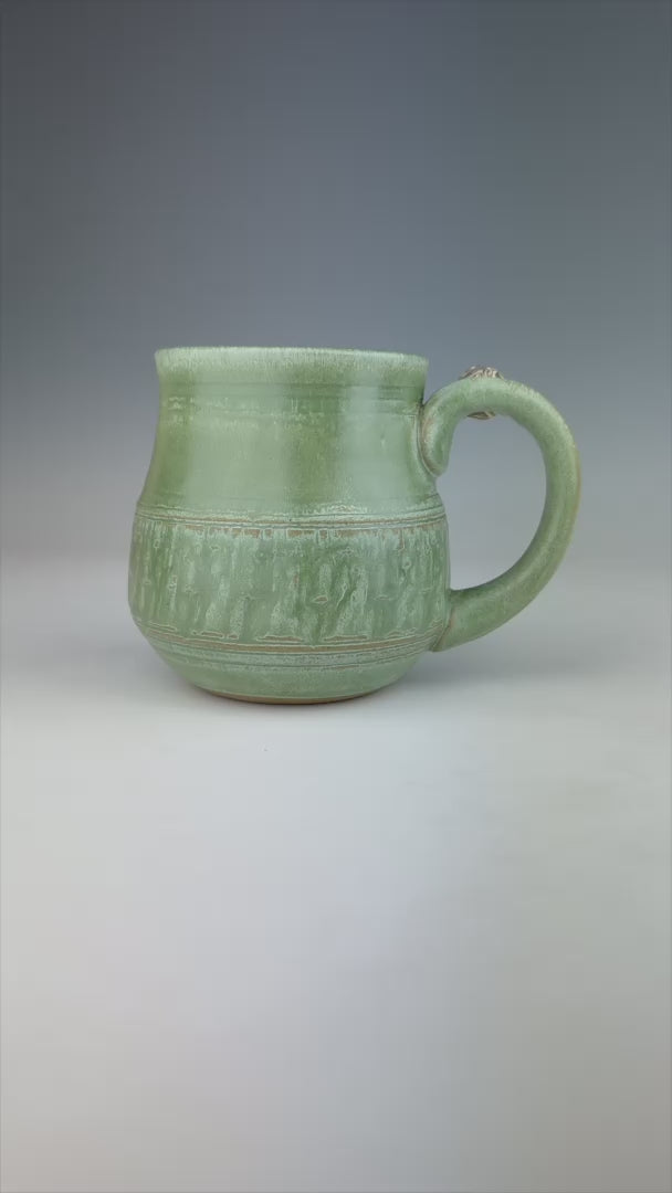 Meet Alicia. Her green glaze accentuates her chattered and carved texture on bottom, which is balanced nicely with her smooth recurve on top. She "handles" a very nice, high-contrast marble of stoneware, black, and white.