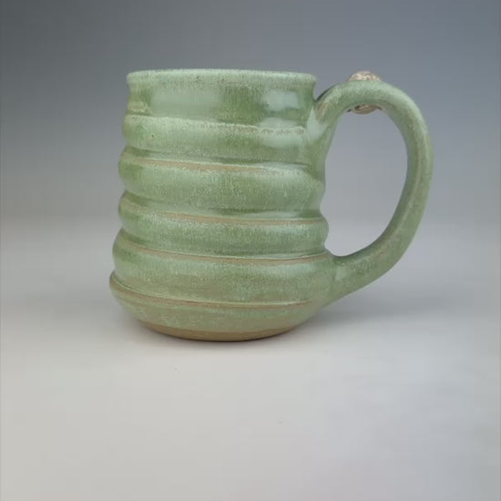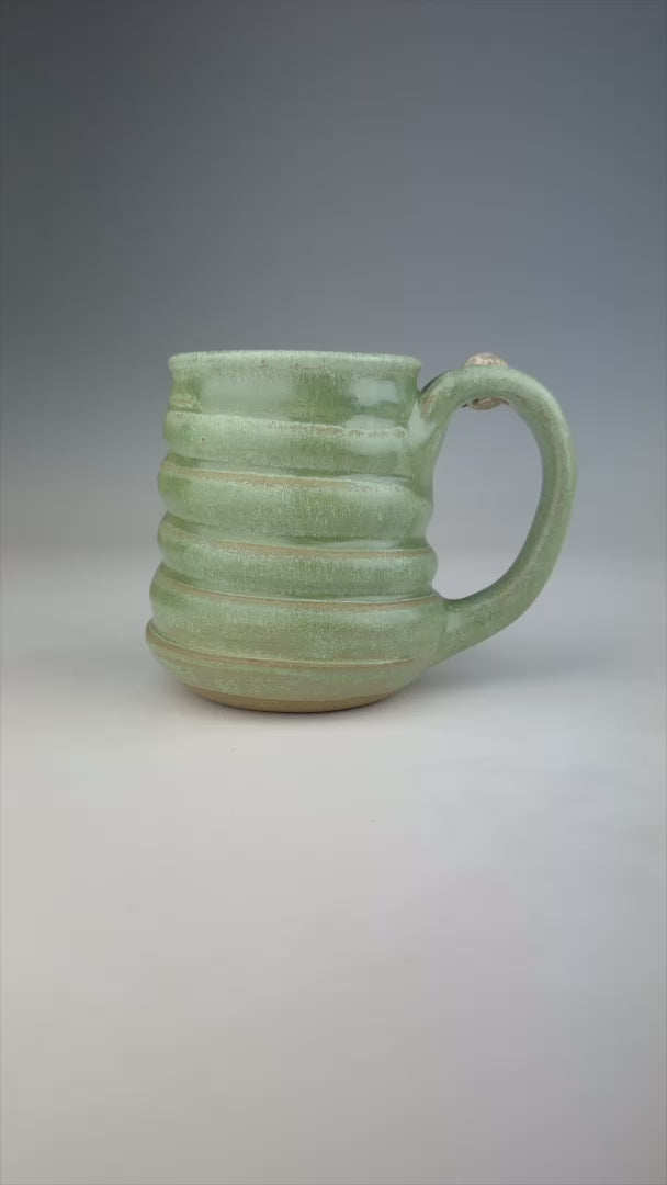 Meet Alyssa. Try not to get her too wound up! She wears the look well, though, and her soft green glaze and subtle yet dynamic marble help her stay cool as a cucumber.