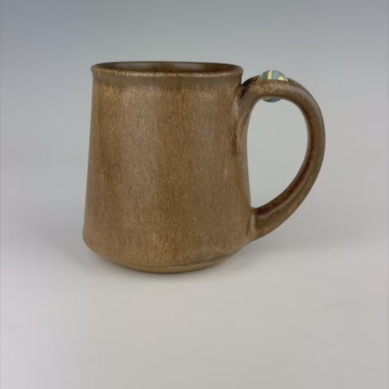 Meet Drew. Drew likes to lay low in his simple, chocolate brown suit, but he has a surprise up his sleeve! His marble shows a striking display of yellow and blue.