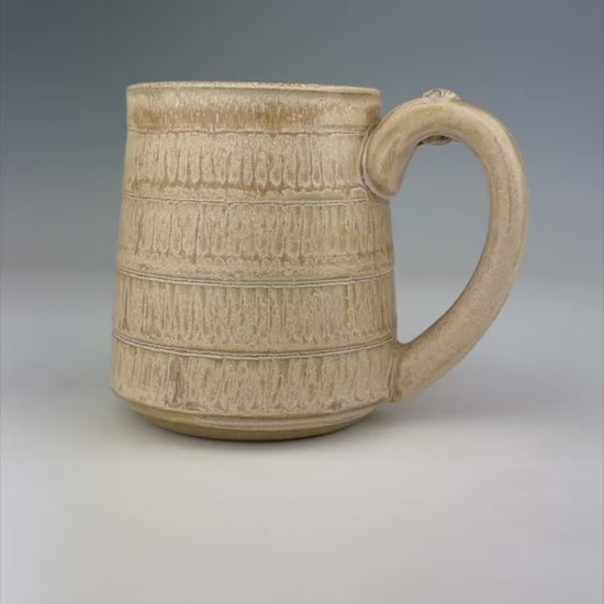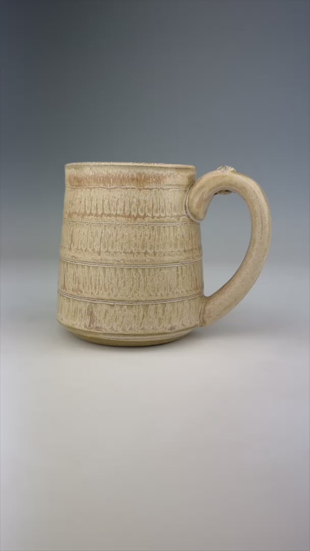 Meet Ellen. She epitomizes simple elegance with her stripes of chattered texture covered in cream glaze. Her marble is a real classic with stoneware, black, and white.