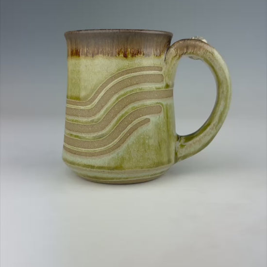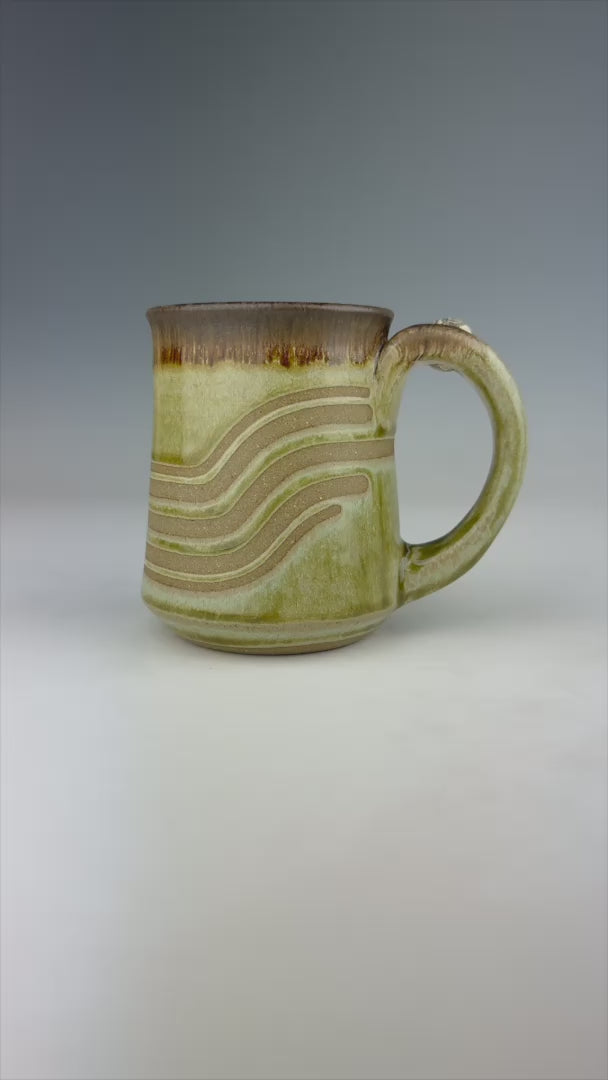 Meet Piper. A pin-striped pin-up with gorgeous green and beautiful brown. Each stripe was placed individually with care by Molly. Her marble doesn't disappoint. It has a lovely swirl of stoneware, white, and black.