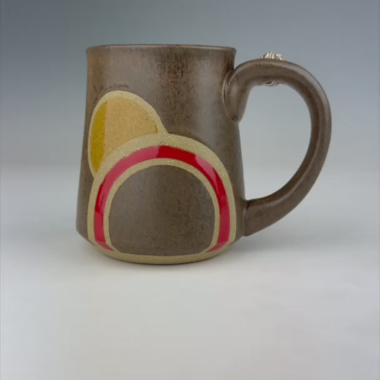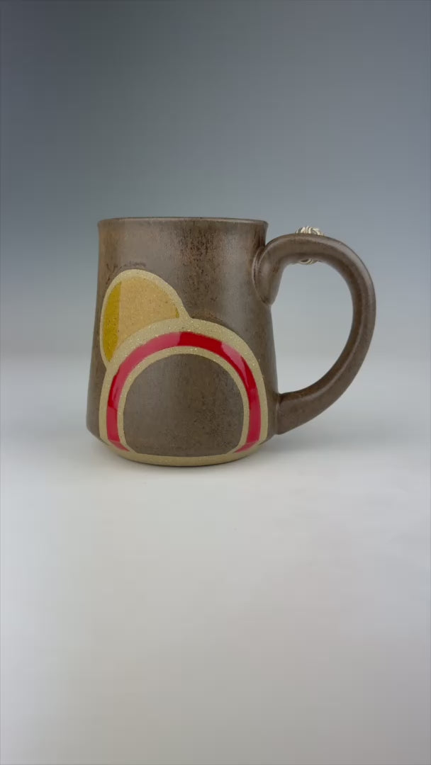 Meet Templeton. He stands out as a favorite among his creators. Carefully placed vinyl tape, and hand-painted and dipped glaze create a bold and satisfying surface treatment. His marble is worthy to call his handle home with bold swirls of black, white, and stoneware.