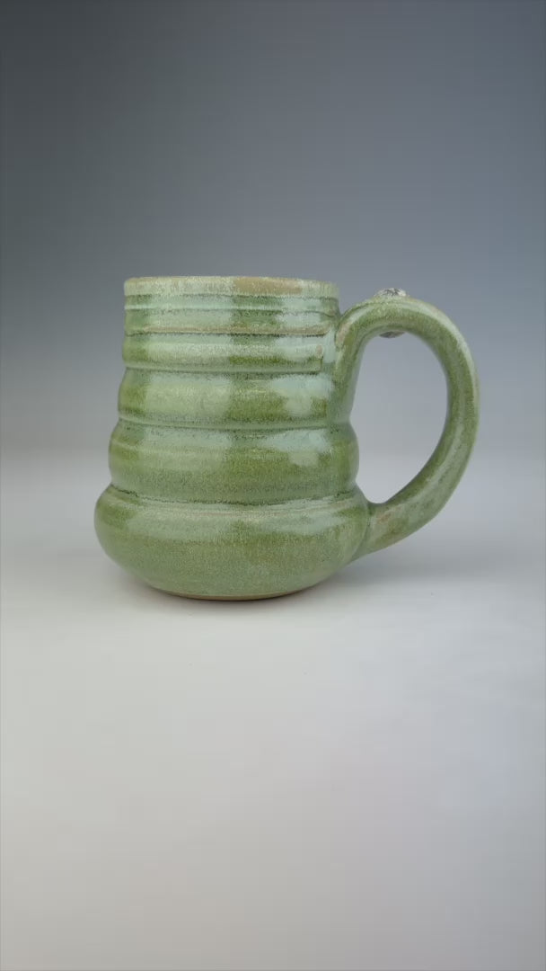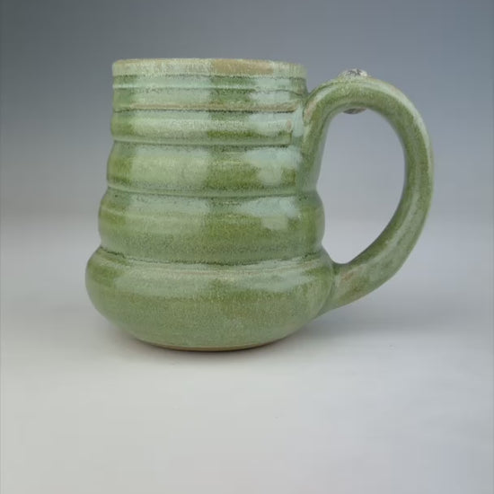 Meet Tilly. Her stacked curves are positively glowing in green. Her marble has bright blue, subtle yellow, stoneware, white, and black.